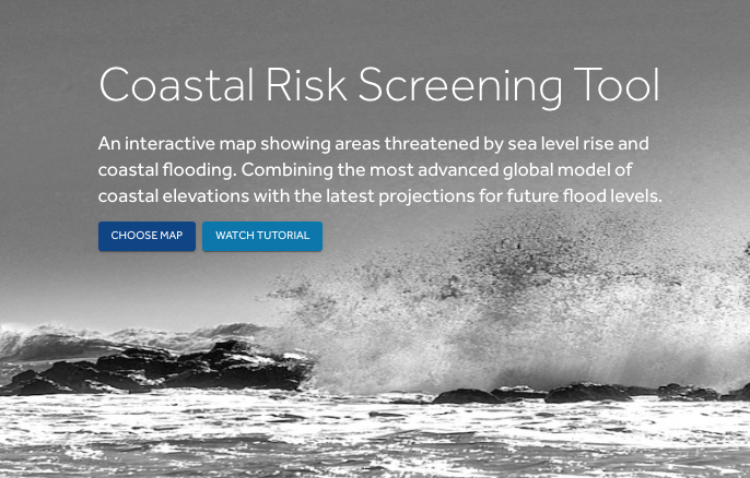 The Coastal Risk Screening Tool interactive website (site also available in Spanish) offers a range of map-based simulations based on climate models that show how sea level rise and flooding could affect coastal areas around the world. By clicking on the “choose map” button, students can choose to view areas at risk by year, water level, temperature, the melting of ice sheets, and more. There is even a map that shows specifically how affordable housing in different communities will be affected by sea level rise.